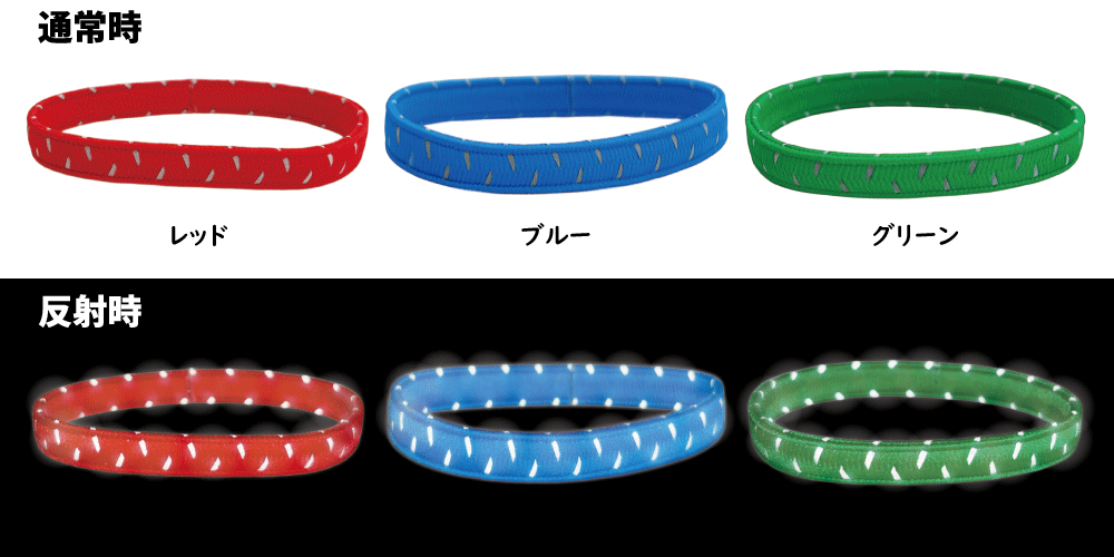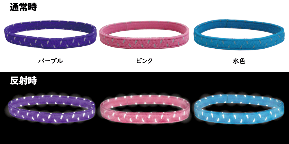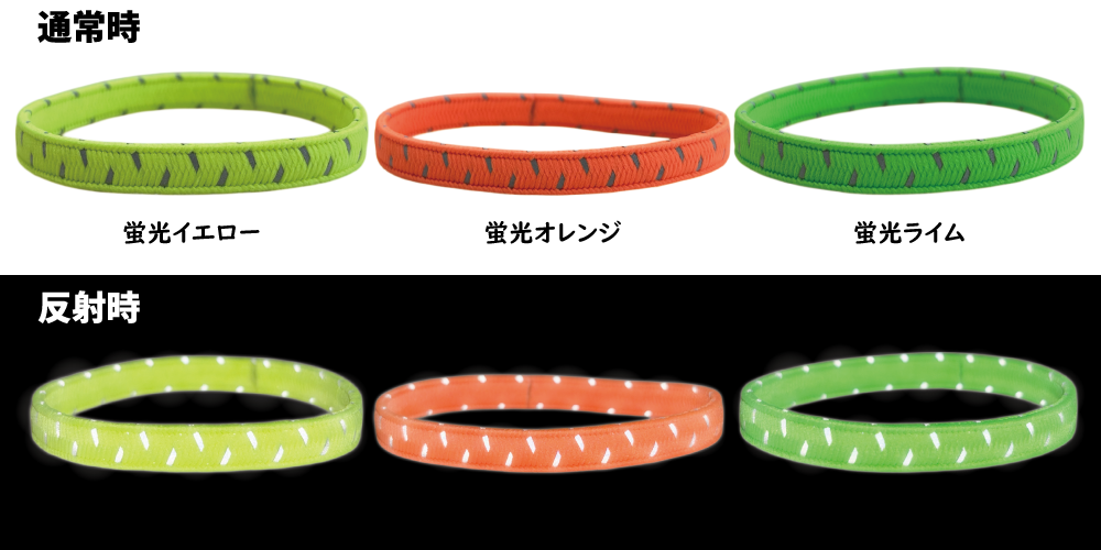 【NEW】反射材が織り込まれたカラフルな反射ゴムバンド 幅8㎜×19㎝ 全10色