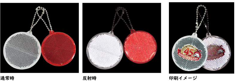 このキーホルダーには再帰反射性能が搭載されており、薄昏や夜間など暗い場所でも目立ちます。